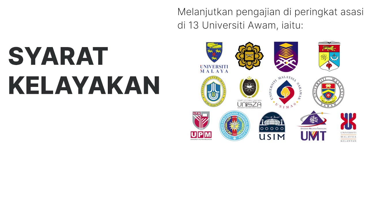 Matrikulasi Asasi. Kesemua 20 buah UA ini dibahagikan ke dalam tiga kategori iaitu Universiti Penyelidikan research university Universiti Komprehensif dan Universiti Berfokus. Klik link untuk info lengkap asasi awam httpsbuffly3eiOUki.